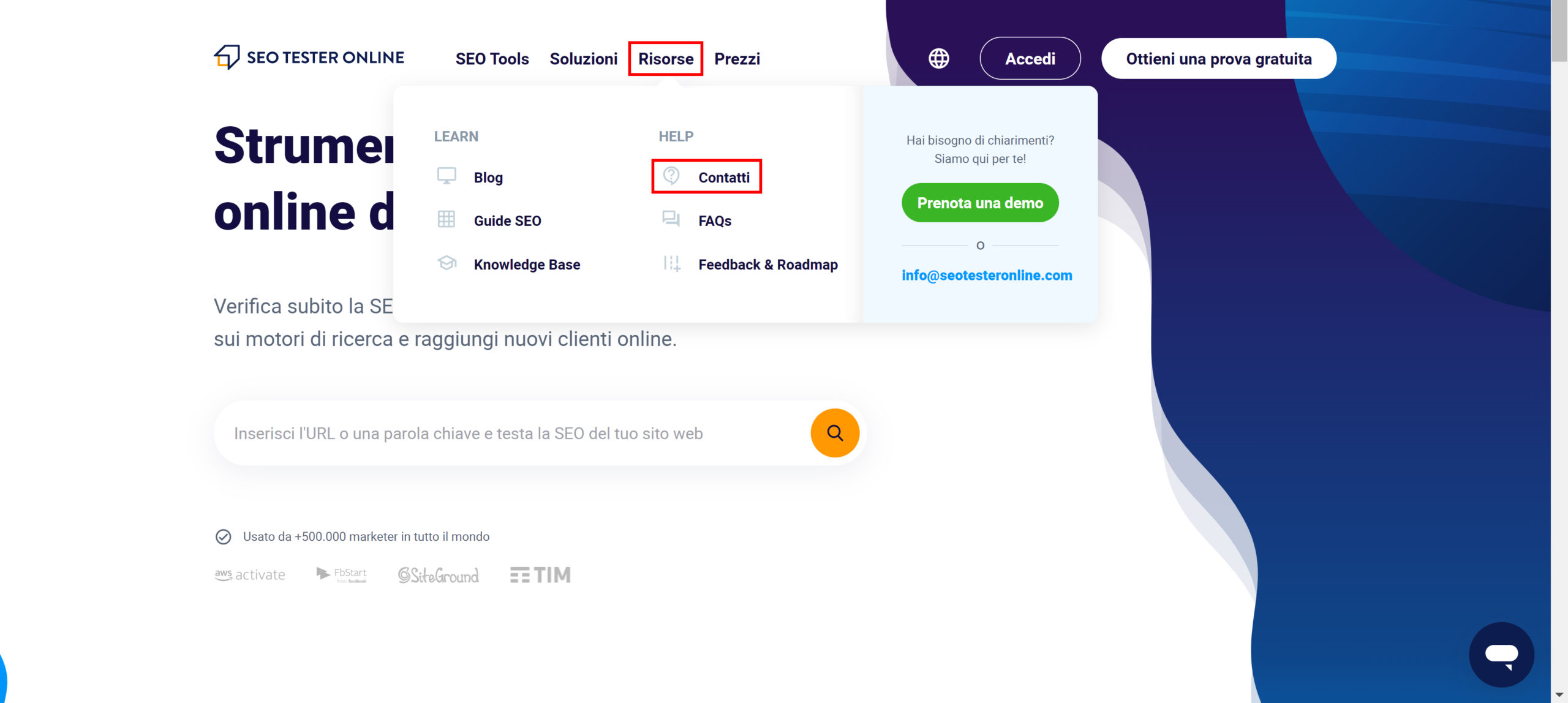 - SEO Guides: allows you to access our SEO Guides, useful for deepening the salient SEO issues;