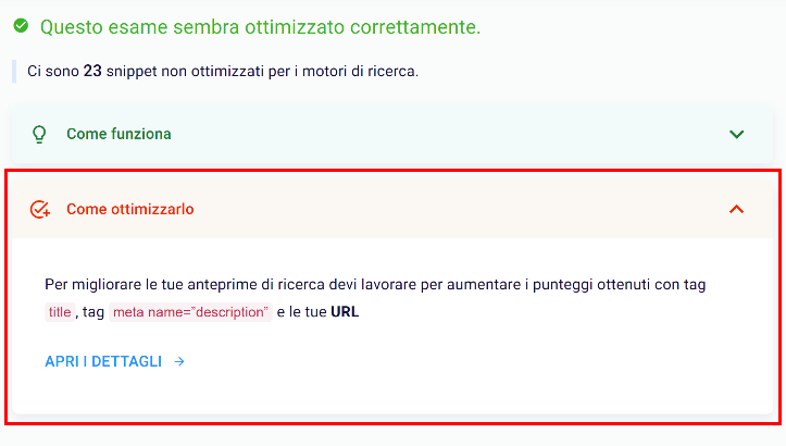 Always remember that in the “How to optimize it” area you can investigate the various critical issues by clicking on “Open details”.