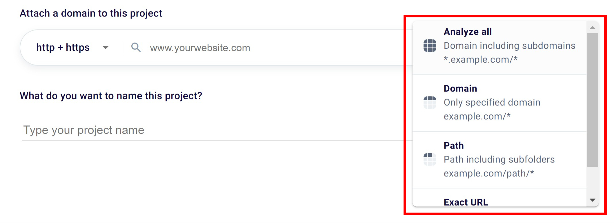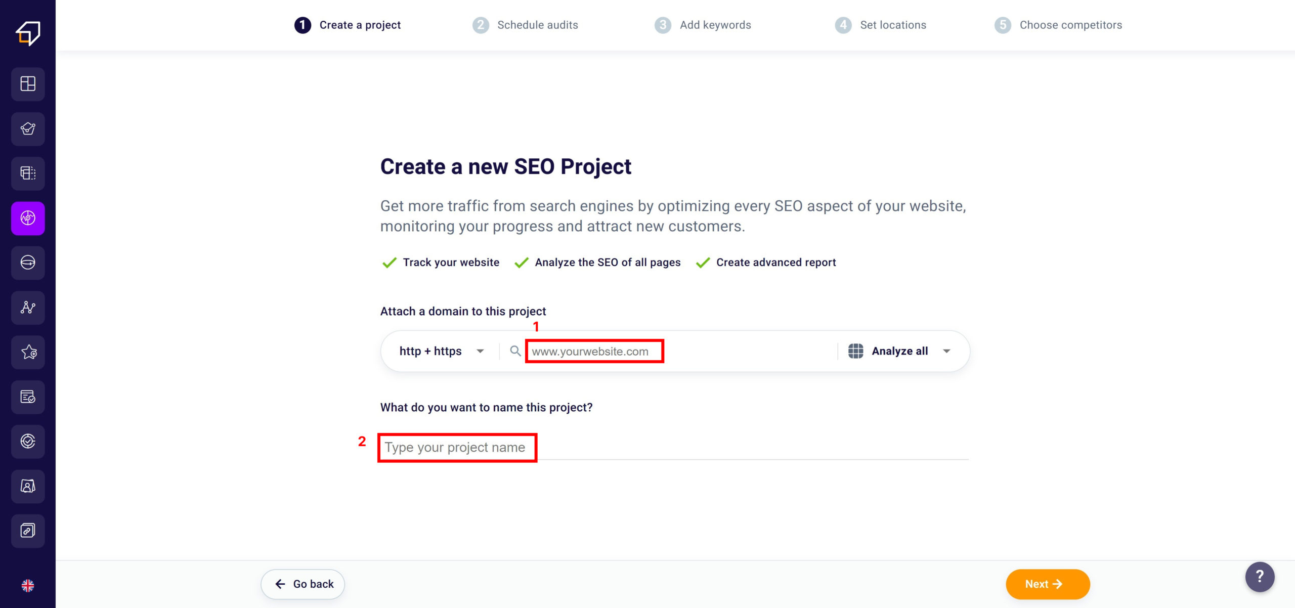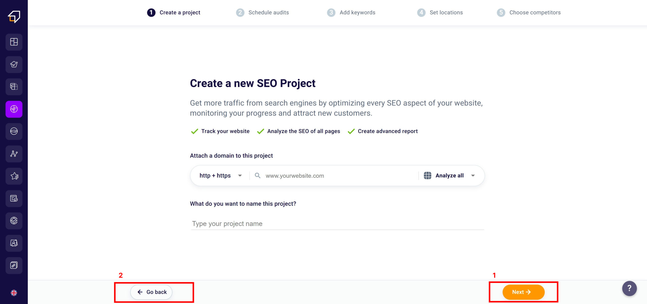To give your SEO project a name, just type it in the appropriate input box (2).