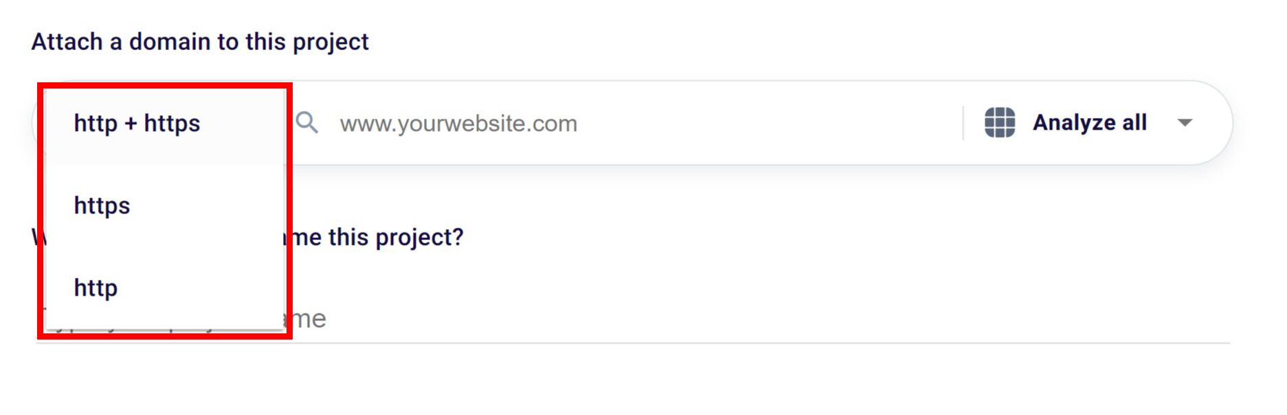 Thanks to the select on the left of the box, you can choose to scan only the pages that contain the http protocol, only those that contain the https protocol, or both.