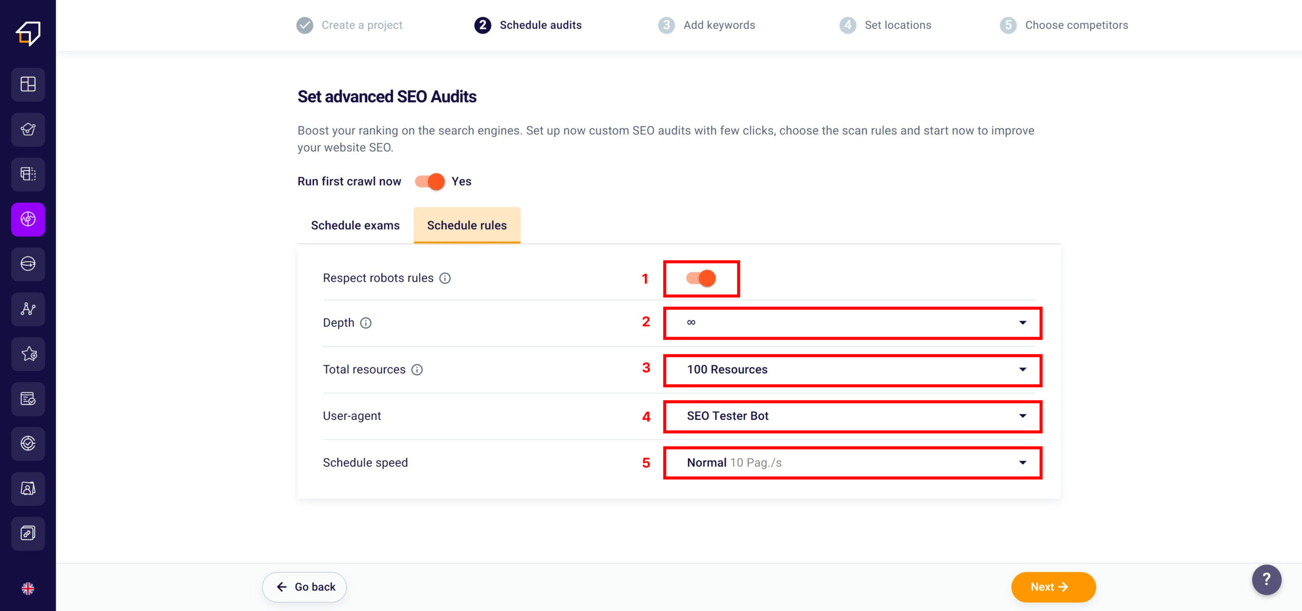 If you want to set clear and specific crawling rules instead, you will need to click “SEO crawling rules”. This screen will appear.